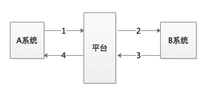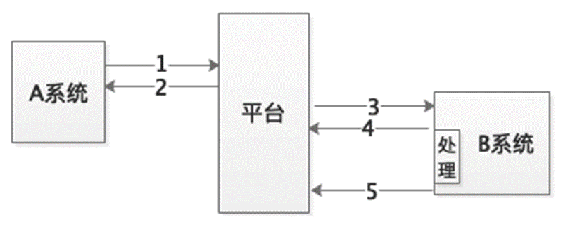 消息由A系统发出,系统对消息内容进行处理后,发给B系统处理,B系统收到消息后,开始同步处理,处理完成后把处理结果发给集成平台,平台返回给A系统。