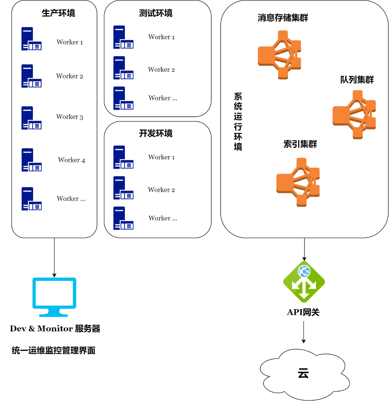 高可用一体化集群通过中央控制节点进行统一调度,协调集群内节点状态,实现开发、测试、监控、运维等的一体化,达到一处配置、多点运行、数据一致的效果。确保高负载状态下的稳定运行,同时遇到故障时能够自动检测与快速切换。此架构下,运维人员可通过统一的中央管理界面进行全部节点的控制,大幅降低运维复杂度。