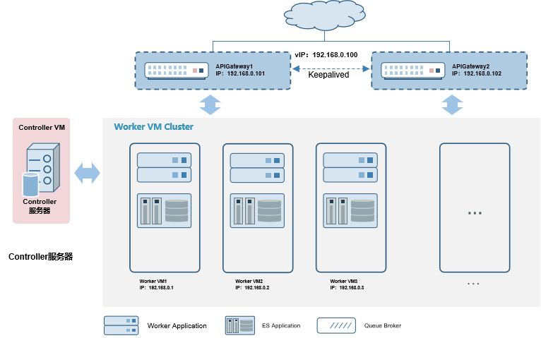 推荐部署架构为“1+2+3”,即1台Controller + 2台API Gateway + 3台Worker。