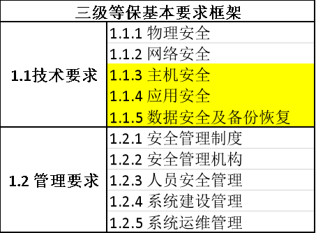 三级等保基本要求分为技术和管理两大项共10小项(如图2),其中和集成平台相关的则是技术要求下属的主机安全、应用安全、数据安全及备份恢复这三项。